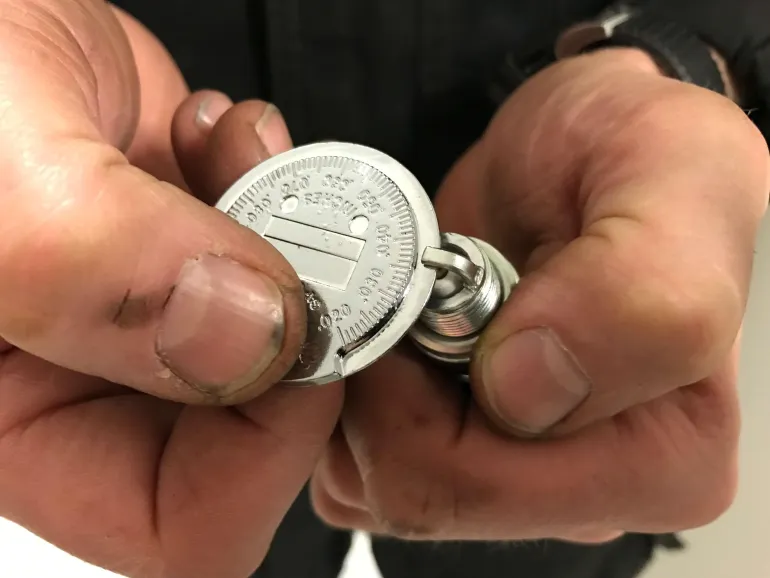 PELA 494745 on sytytystulpan kärkivälin mitta tulpan kärkien välin mittaamiseen. Pieni koko ja reikä mahdollistaa esim. kiinnittämisen avainnippuun.