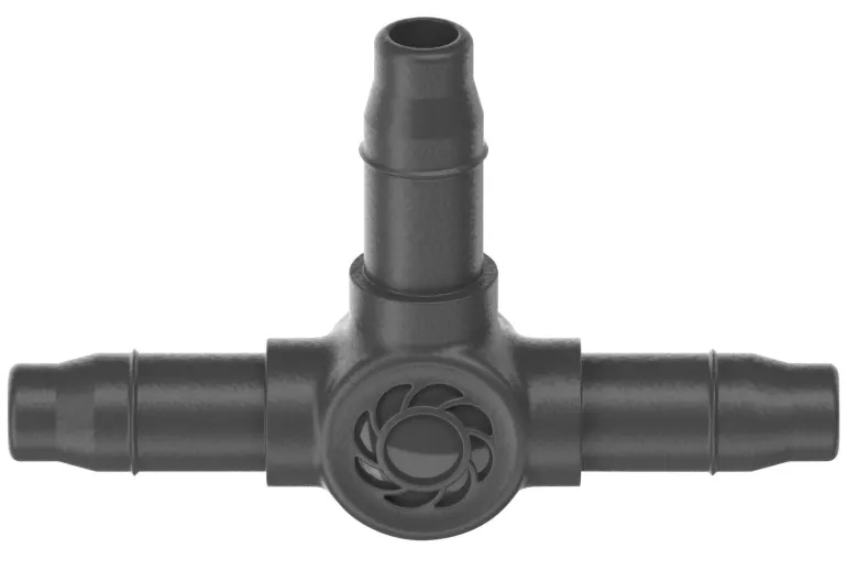 GARDENAn T-liitin on tarkoitettu Micro-Drip-järjestelmän 4,6 mm:n haaroitusputken ja 4,6 mm:n tippukasteluletkun haaroittamiseen, kun kastelet esimerkiksi kukkapenkkiä.