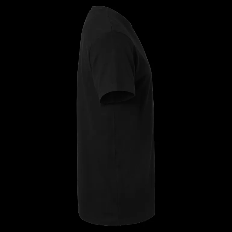 Klassinen single jersey -trikoinen T-paita, 100 % kampapuuvillaa. Kaksinkertainen reunus elastaanilla. Ilman sivusaumoja.