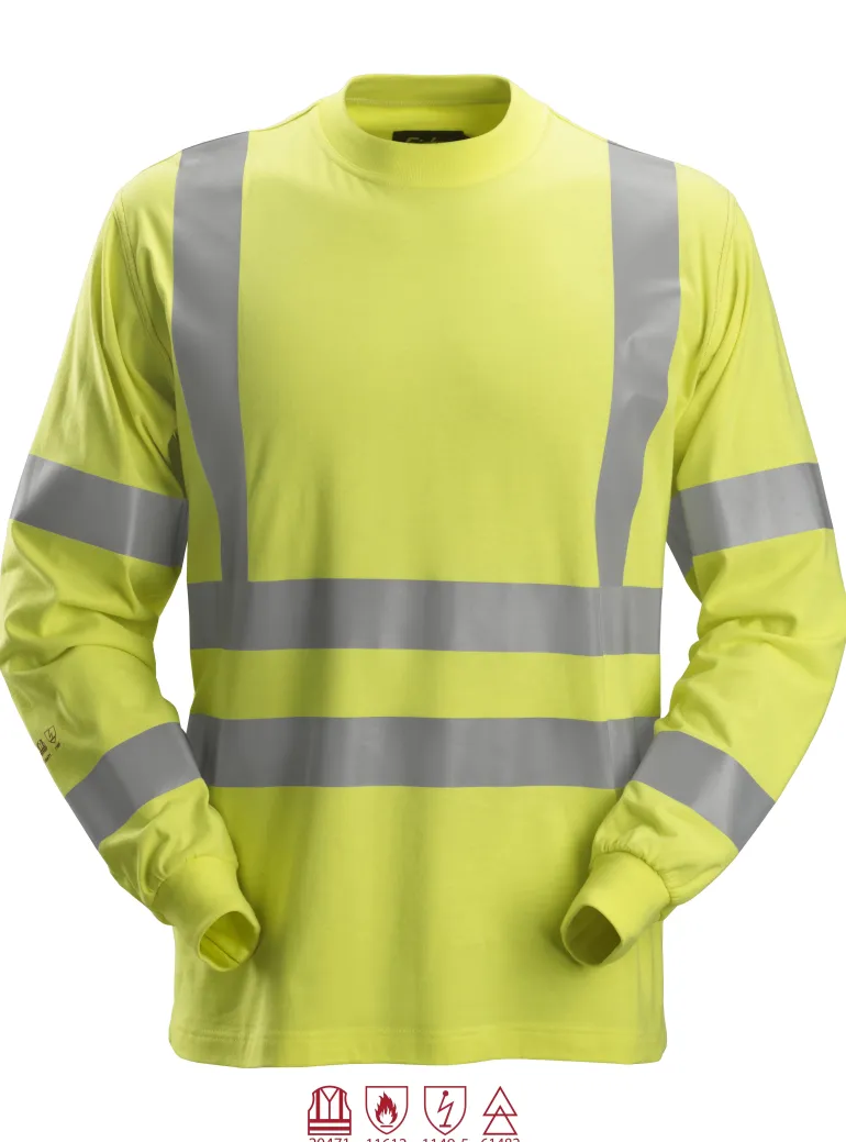 Tämä pitkähihainen huomiovärinen t-paita on valmistettu pehmeistä ja mukavista kankaista ja on siksi erittäin mukava. Tämä vaate suojaa myös lämmöltä ja liekeiltä, staattiselta sähköltä ja valokaarilta, ja se on täydellinen valinta korkeatasoisen suoja-asun alimmaksi kerrokseksi.