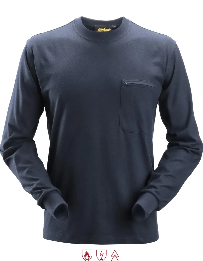 Tämä pitkähihainen t-paita on valmistettu pehmeistä ja mukavista kankaista ja on siksi erittäin mukava. Tämä vaate suojaa myös lämmöltä ja liekeiltä, staattiselta sähköltä ja valokaarilta, ja se on täydellinen valinta korkeatasoisen suoja-asun alimmaksi kerrokseksi. Sopii täydellisesti ProtecWork-kerroksen 2 vaatteiden, collegepaitojen ja takkien alle.