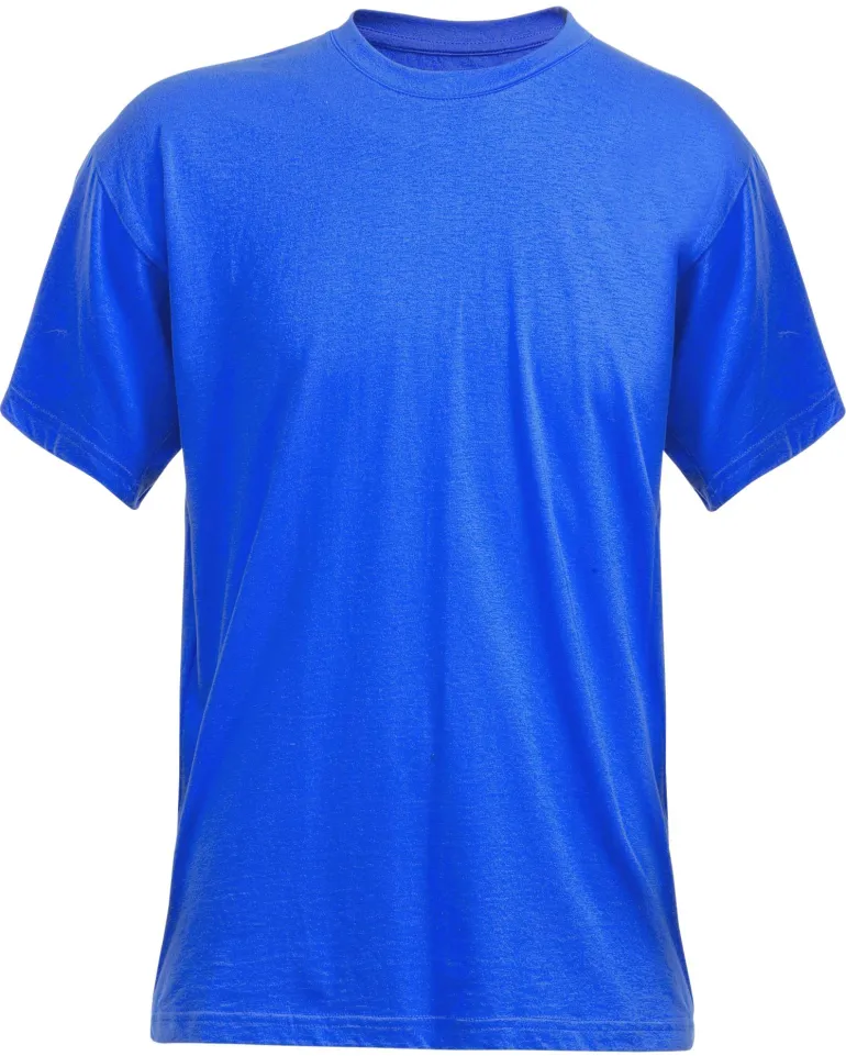 Klassinen T-paita puuvillasta. Suora malli joustinneulotulla pääntiellä ja ilman sivusaumoja.