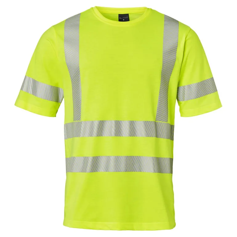 Huomio-T-paita, jossa on pyöreä pääntie. Joustavat heijastinnauhat. EN ISO20471 luokka 2 XS–S ja luokka 3 M–3XL.