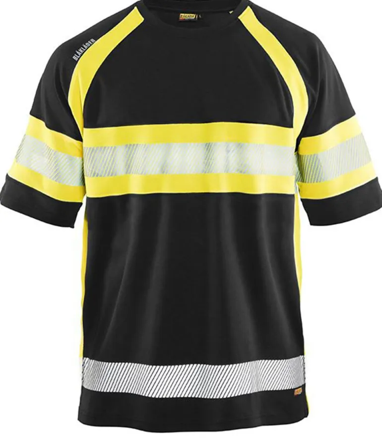 Huomiovärisen t-paidan polygiene-käsittely ehkäisee pahoja hajuja. T-paita on kosteutta siirtävä ja UV-suojattu, siinä on 50 mm:n painetut katkoheijastimet, jotka parantavat joustavuutta ja hengittävyyttä, pyöreä pääntie ja vahvistettu niskasauma, polygiene-käsittely, kangas siirtää tehokkaasti kosteuden pois iholta. Blåkläder-painatus olkapäällä. Materiaali: 100 % polyesteria, pikeeneulosta, kosteutta siirtävä, bambuhiili ehkäisee hajuja, 155 g/m².