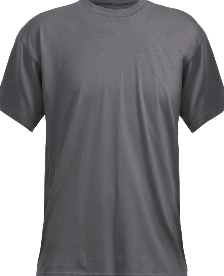 Klassinen T-paita paksummasta puuvillasta. Suora malli joustinneulotulla pääntiellä ja ilman sivusaumoja.