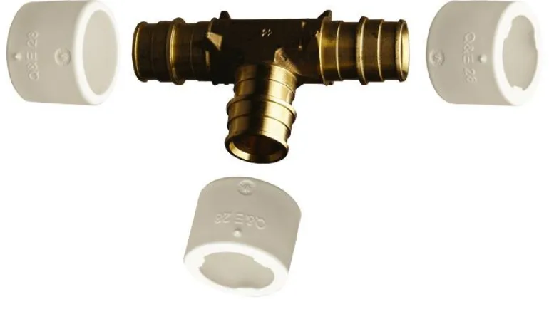 Uponor 1870256 on sinkkikadon kestävästä messingistä valmistettu T-putki, jossa on kiristysrenkaat.