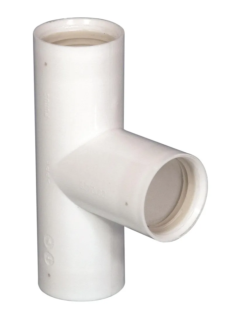 T-putki 90°:n kulmalla, pistokeliitäntä. Valmistettu PP-muovista, saatavana koot 32 mm ja 40 mm.