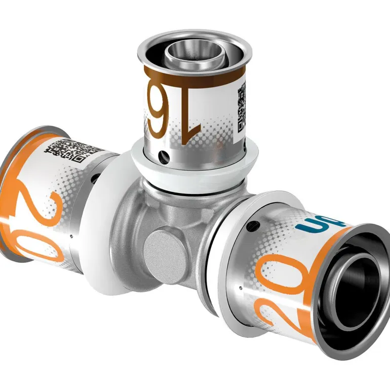 T-putki ruostumattomasta teräksestä valmistetulla puristusholkilla, saatavana koot 32x25x32 ja 20x20x16 mm. Puristusohjain, puristuksen ja koon värikoodaus. Ei edellytä putken jäysteen poistamista ennen liittimen asentamista putkeen.