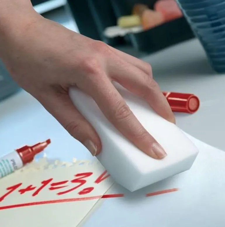 Neljän kappaleen pakkaus tahranpoistosieniä, jotka poistavat tahrat mekaanisesti kuin pyyhekumi – lisää vain vettä. Poistaa vaikeat tahrat, kuten teen, kahvin, kengänjäljet, piirustusjäljet sekä kalkkikertymät ja rasvaisen lian useimmilta kovilta pinnoilta.