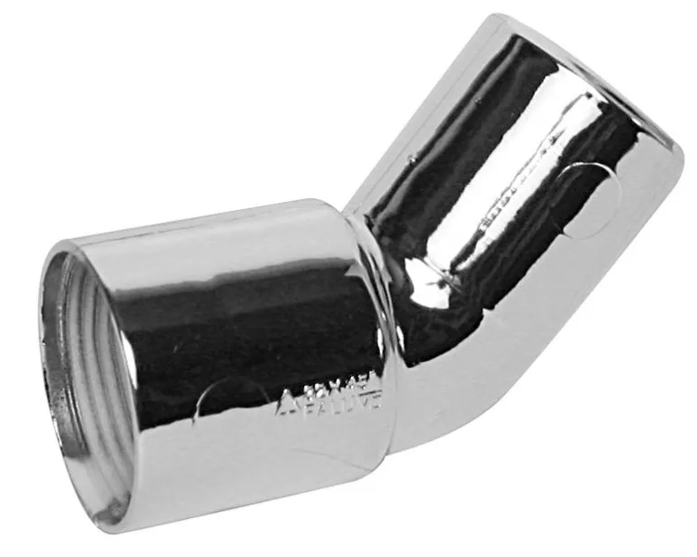 Kromattu taivutettu putki 32 mm x 45°, jossa on kaksi holkkia, pistoliitettäväksi sisäviemäriin. Sisältyy valkoisella tiivisteellä varustettuun FaluVULK-järjestelmään.