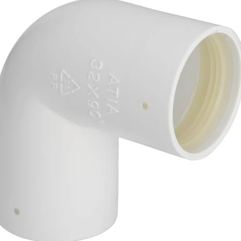 40 mm taivutettu putki 45° kulmalla, kiinteä kumirengastiiviste sisätilojen viemäriputkien pinta-asennukseen.