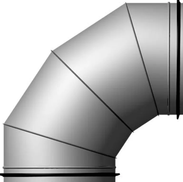 Taivutettu putki 90 asteen taivutuskulmassa. Segmenteistä koottu tai puristettu koosta riippuen.