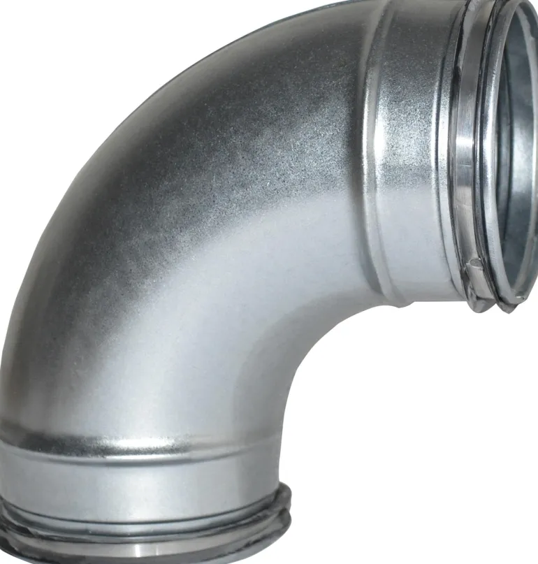 Taivutettu putki 90° kulmassa, täydellinen tiivisteellä. Valmistettu galvanoidusta teräksestä, mukana tiivisteet, jotka tiivistävät hyvin putken ja kulmaputken välin.