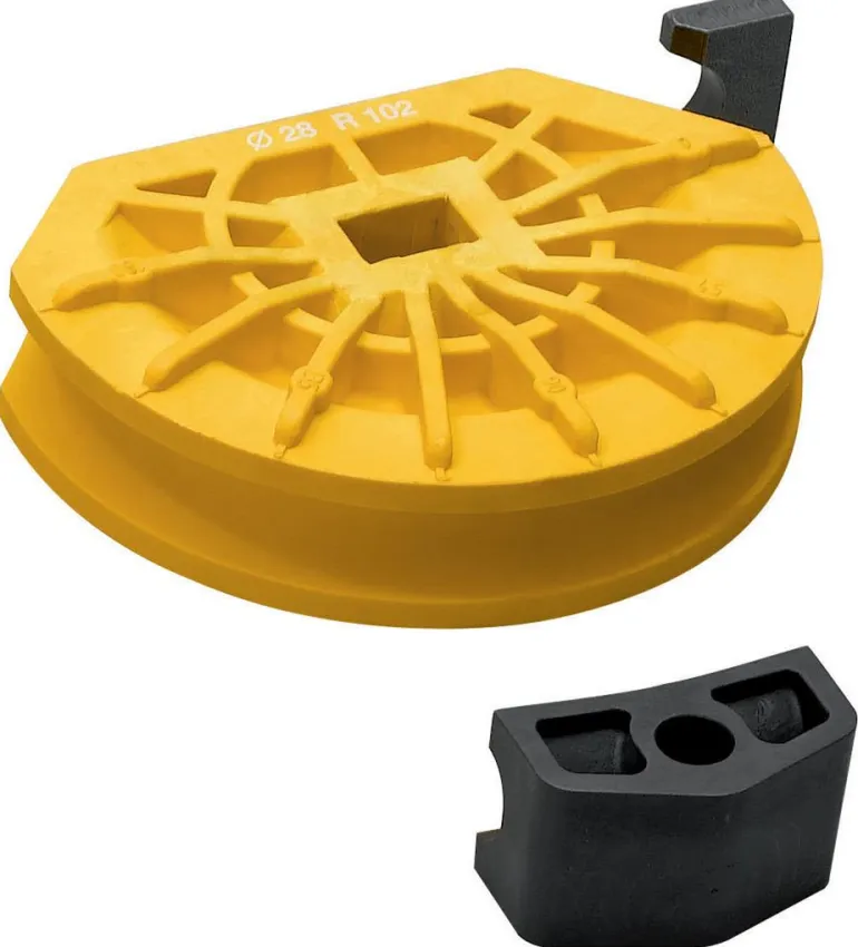 Taivutussegmentit ja liukukappaleet 180°, muoto- ja painevakaat, superkovaa lasikuituvahvisteista polyamidia. Taivutussegmenttien ja liukukappaleiden optimaalinen sovitus takaa materiaalin mukaisen liukumisen ilman halkeilua tai taittumista. Kulma-asteikko jokaisessa taivutussegmentissä ja merkintä jokaisessa liukukappaleessa mittatarkkaa taivutusta varten. Taivutussegmentin ja liukukappaleen nopea vaihto.