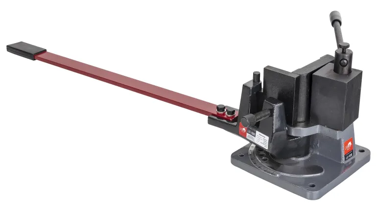 PELA UB 100 on taivutuskone lattaraudan, pyöreiden tankojen, neliötankojen ja profiiliraudan taivutukseen. Varustettu asteikolla ja materiaalipysäyttimellä.