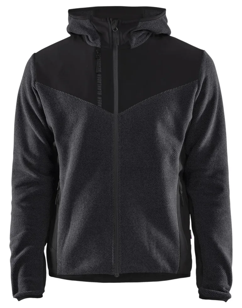 Hupullinen neulottu takki on tyylikäs, ja sen fleecemateriaali uskomattoman miellyttävää. Takki on valmistettu uudesta ainutlaatuisesta materiaalista, jota voidaan kuvailla kolmiulotteiseksi fleeceksi. Harjatun materiaalinsa ansiosta takin pintakuvio on kolmiulotteinen ja takki on joustava, sileä ja mukava sekä lämmittää silloin, kun sitä eniten tarvitaan. Kulumiselle alttiissa kohdissa on vahvuutta lisäävät softshell-paneelit. Kainaloissa ei ole softshell-materiaalia, mikä parantaa takin ilmanvaihtoa. 5940-mallissa on erinomaiset pinnat profiloinnille, mutta se soveltuu yhtä hyvin sekä työhön että vapaa-aikaan. Yksisuuntainen muovivetoketju, sisäetulista. Vetoketjullinen rintatasku. Vetoketjulliset etutaskut. Pidempi takakappale, joustava nauha helmassa. Hihansuissa joustava nauha. Materiaali: 97 % polyesteria, 3 % elastaania, Jacquard-neulos, harjattu takaosa, stretch, 290 g/m2. Pesuohje: 40 °C.