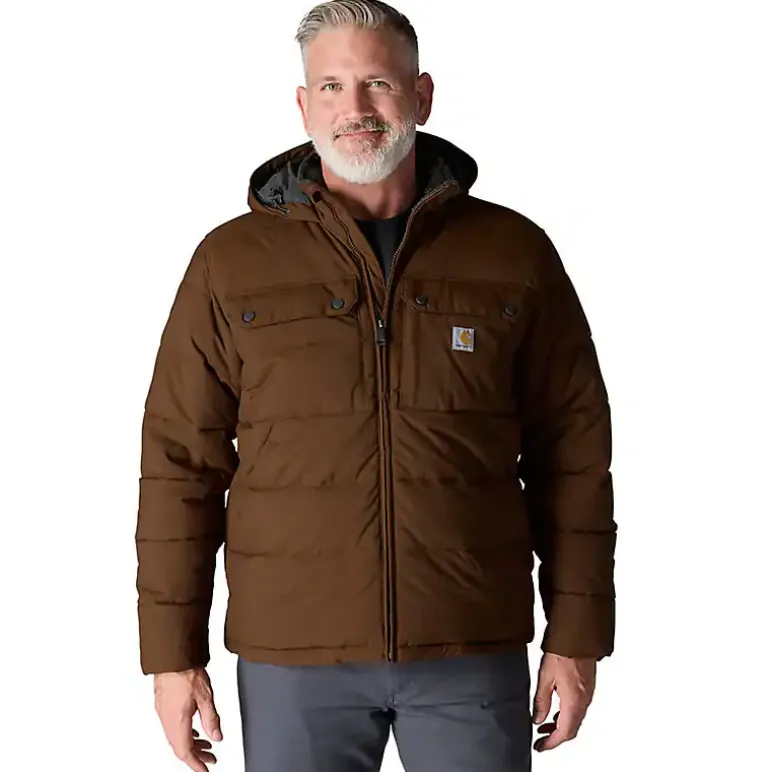Carharttin takki, joka sopii sekä arki- että työkäyttöön. Takki on erittäin kulutusta kestävä, lämmin ja mukava päällä. DWR-käsitelty nailonkuori hylkii kevyttä sadetta ja likaa, ja Rain Defender™- sekä Wind Fighter™ -teknologiat pitävät sinut kuivana ja suojaavat tuulelta. Sisäpuolella kevyt sherpa-vuori tuntuu pehmeältä ja lämpimältä, ja Syncloud Loft -eristys auttaa säilyttämään lämmön myös lämpötilan laskiessa. Loose fit -istuvuus (isohko). Kiinteä, kolmiosainen huppu piilotetulla kiristysnyörillä sekä korkea kaulus tarjoavat lisäsuojaa sään muuttuessa. Vetoketjulliset sivutaskut ja ulkopuoliset rintataskut napeilla (vasemmassa piilovetoketju). Pidennetty takahelma säädettävällä kiristysnyörillä suojaa selkää liikkeessä, ja joustavat hihansuut pitävät kylmän loitolla. Kankaan paino on 153 g/m², mikä tekee takista keskipainoisen – se yhdistää hyvän liikkuvuuden ja kestävyyden, ollen riittävän jämäkkä päivittäiseen käyttöön mutta silti kevyt ja mukava koko päivän pidettäväksi. Tämä takki on sinulle, joka tarvitset lämpöä, sääsuojaa ja kestävyyttä. Täydellinen sekä työhön että vapaa-aikaan. Kangas 100 % nailonista.