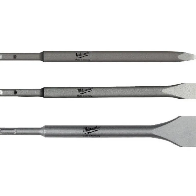 Milwaukee 4932430001 on 3-osainen talttasarja, taltan koko 250 mm, SDS-Plus-kiinnitys. Pakkaus sisältää, yhden kärkitaltan, yhden lattataltan ja yhden leveän taltan.