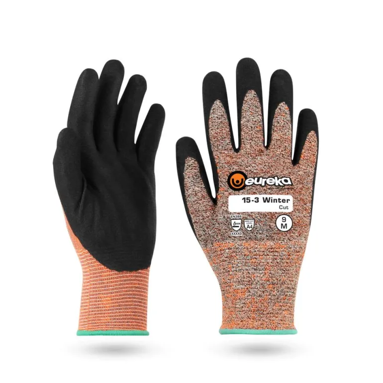 Vuorattu nitriiliupotettu viiltosuojakäsine hyvällä työskentelymukavuudella.