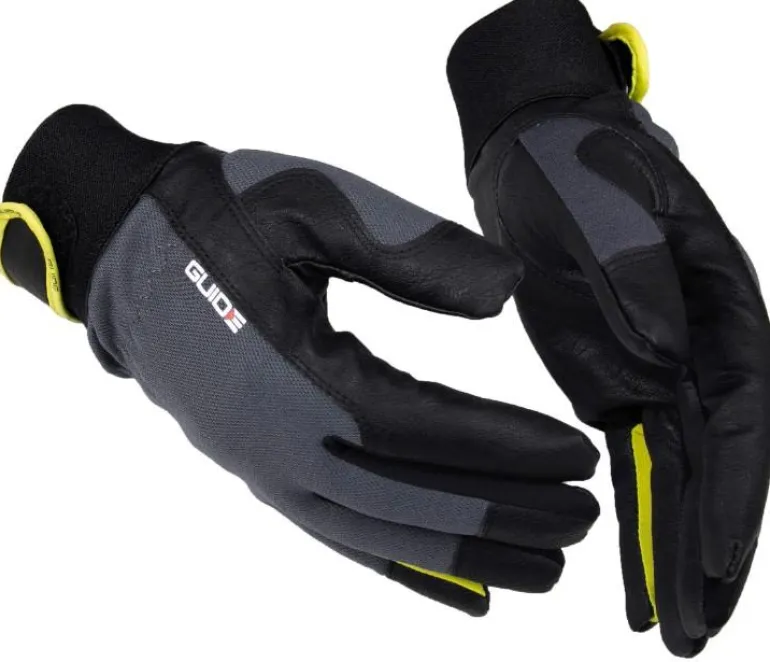 Guide Gloves 775W PP on vedenpitävä talvikäsine synteettistä nahkaa, jossa joustava kämmenselkä ja vahvistetut sormenpäät. Ranneke on helppo säätää tarranauhalla.