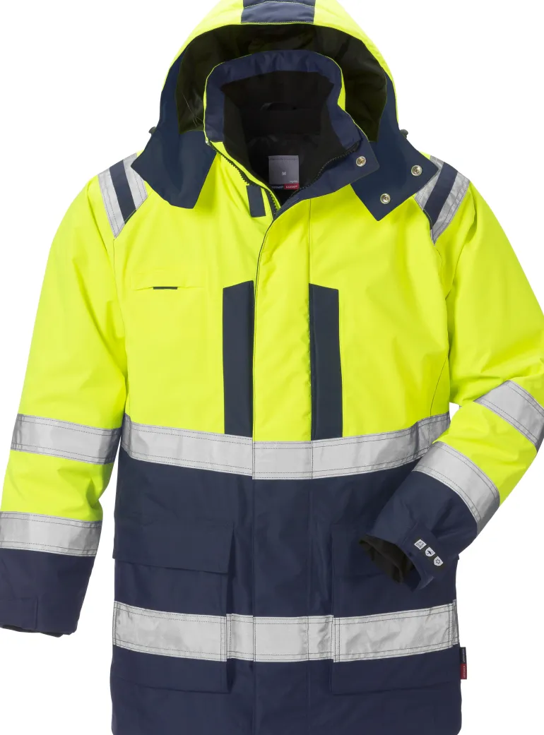 Talvitakki veden- ja tuulenpitävästä Airtech-materiaalista. Hengittävä. Irrotettavan tikkivuoren ansiosta takkia voidaan käyttää myös kuoritakkina. Talvitakissa on irrotettava ja säädettävä huppu, säädettävät hihansuut ja fleecevuorillinen kaulus. Takki on Öko-Tex-sertifioitu ja hyväksytty standardien EN ISO 20471 luokan 3, EN 343 luokan 3/3 ja EN 342 mukaisesti. Se on testattu teollisen pesustandardin ISO 15797 mukaisesti.