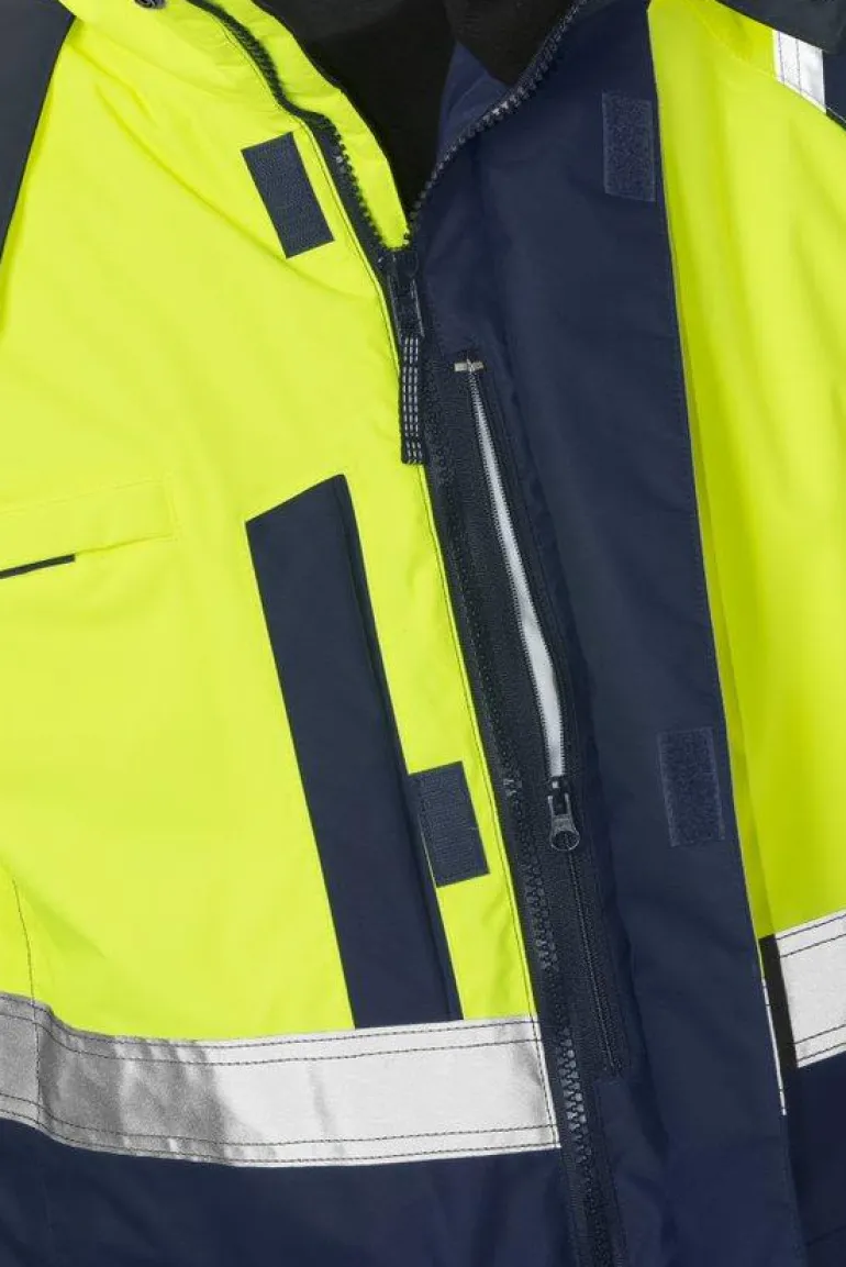 Talvitakki veden- ja tuulenpitävästä Airtech-materiaalista. Hengittävä. Irrotettavan tikkivuoren ansiosta takkia voidaan käyttää myös kuoritakkina. Talvitakissa on irrotettava ja säädettävä huppu, säädettävät hihansuut ja fleecevuorillinen kaulus. Takki on Öko-Tex-sertifioitu ja hyväksytty standardien EN ISO 20471 luokan 3, EN 343 luokan 3/3 ja EN 342 mukaisesti. Se on testattu teollisen pesustandardin ISO 15797 mukaisesti.