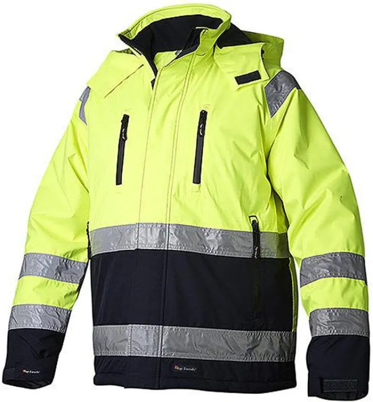 Tuulen- ja vedenpitävä talvitakki, jonka huomioluokka on 3 ja väreinä keltainen/laivastonsininen. Teipatut saumat, hyvä hengittävyys ja joustava päällimateriaali parantavat käyttömukavuutta ja istuvuutta. Monta käytännöllistä taskua. Irrotettava huppu. 100 % polyesteriä.