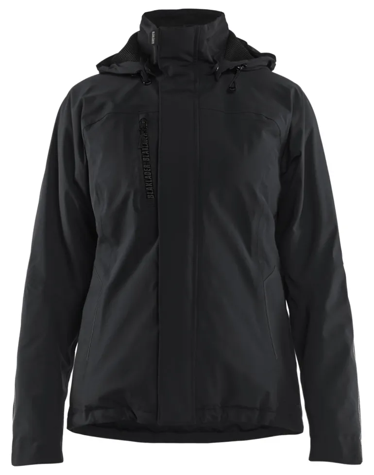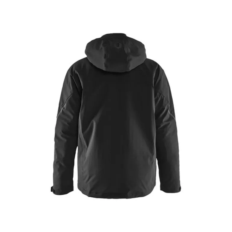 83 % polyamidi, 17 % spandex, laminoitu, vedenkestävä 15000 mm, tuulenpitävä, hengittävä Ret 11,3, stretch, 170 g/m². Konepesu 40 °C, ei rumpukuivausta.