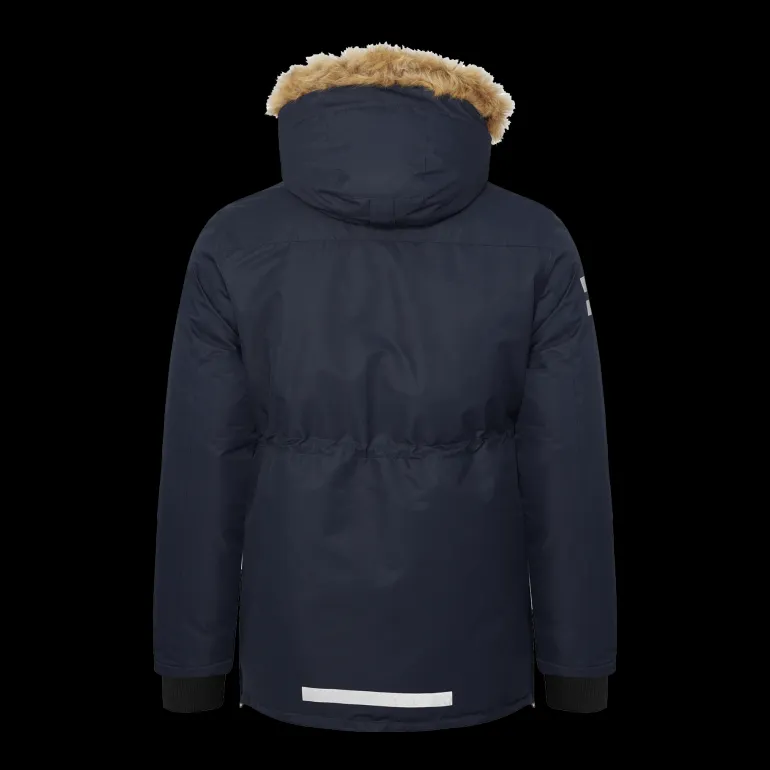 Talviparka kierrätettyä polyesteriä. Tuulen- ja vedenpitävä teipatuilla saumoilla. Päällikankaassa PFC-vapaa Bionic Eco -pintakäsittely. Useita taskuja, kiristysnyöri vyötäröllä ja vetoketjuhalkio sivuilla takaa istuvuuden. Hihoissa säädettävät polyesteriresorit, irrotettava ja säädettävä huppu.