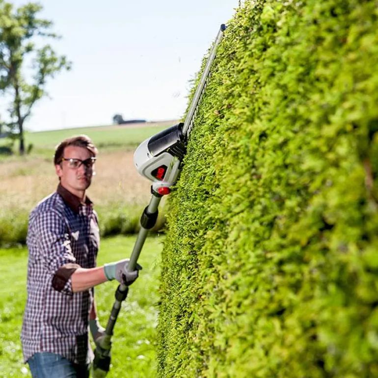 AL-KO EnergyFlex HTA 4045 Li -tankopensasleikkurista tulee yhdessä MT 40 -perusosan kanssa akkukäyttöinen pensasleikkuri. Sisältää 45 cm pitkän vastasuuntaan pyörivän turvaleikkuuterän, jonka leikkuuleveys on 20 cm. Timanttihiottu turvaleikkuuterä mahdollistaa turvallisen työskentelyn ilman terän tarttumis- tai luisumisvaaraa paksuja materiaaleja käsiteltäessä. Toimitukseen sisältyy kahvanpidennin, jolla pensasleikkuria voidaan pidentää 70 cm.