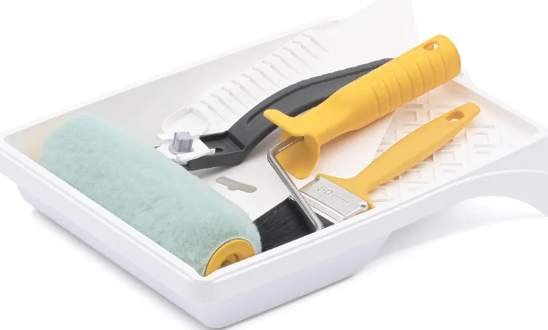 Tapetointisetti, jolla pääset alkuun tapetoinnissa. Tapetointisarja sisältää telavarren, Basic-telan tapettiliimalle, tapetointityökalun, tapettiveitsen, 50 mm Basic-lakkasiveltimen sekä 18 cm maalauskaukalon.