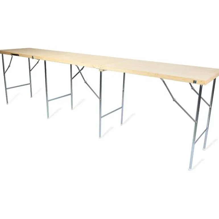 3-osainen tapettipöytä on valmistettu vedenpitävästä koivuvanerista (4 mm). WBP-liimattu, sään- ja kiehumisenkestävä. Pöydässä on sähkösinkityt teräsjalat saksivarsilla ja erikoissaranoilla, jotka takaavat parhaan mahdollisen vakauden. Pöydän pituus on 297 cm, leveys 60 cm ja korkeus 85 cm.