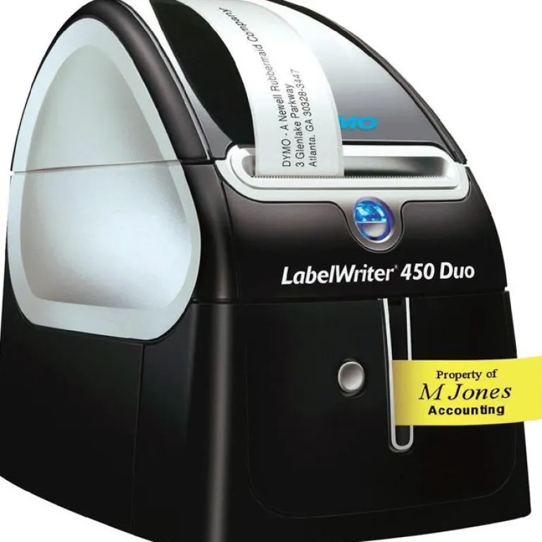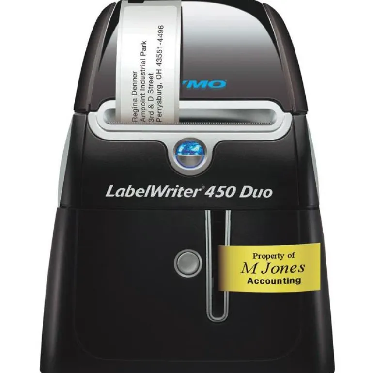 DYMO LabelWriter 450 Duo on konttorikäyttöön tarkoitettu tarratulostin, jossa on paikka kahdelle etikettirullalle. Tulostusnopeus on jopa 71 tarraa minuutissa. Suurin kirjoitusleveys 56 mm.