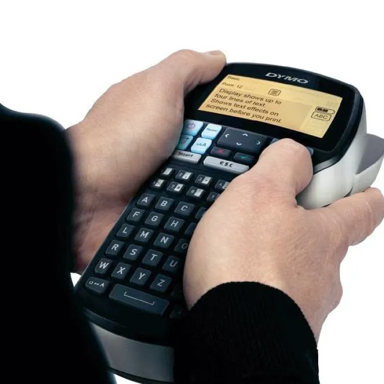 DYMO LabelManager 420P:n monipuolisilla toiminnoilla tulostat tarrat vaivattomasti. Suuri nelirivinen, taustavalaistu näyttö Käyttöä nopeuttavasta parannetusta käyttöliittymästä näet kaikki valikkovaihtoehdot selaamatta. Havainnolliset kuvakkeet tekstin muotoiluvaihtoehdoille Voit valita 8 erilaista kirjasinta ja 10 tekstityyliä. Voit käyttää alleviivausta ja 8 kehystyyliä. Voit tallentaa toistuvasti käyttämäsi tarrat kymmenen tarran muistin ansiosta. DYMO LabelManager 420P -laitteessa käytetään 6, 9, 12 ja 19 mm:n levyisiä DYMO D1 -tarroja. Voit kirjoittaa tekstin nopeasti kirjainnäppäimillä ja käyttää erikoisnäppäimiä välimerkkien, valuuttasymbolien ja erikoismerkkien syöttämiseen.