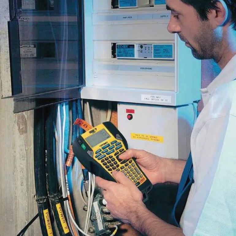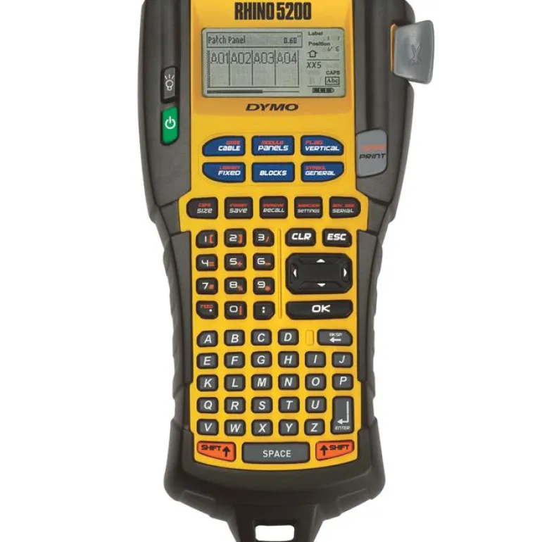 DYMO Rhino 5200 on nopea ja kestävä tarratulostin, joka sisältää aikaa säästäviä toimintoja ja täyttää ANSI/TIA/EIA-606-A-standardien vaatimukset. Laite on suunniteltu ammattikäyttäjille työpaikkaolosuhteisiin. Pikanäppäinten avulla on helppo kirjoittaa valmiisiin mallipohjiin pystysuuntaisia ja kiinteän pituisia tarroja johtojen ja kaapeleiden, terminaalien, kytkentäpaneelien ja sähköpaneelien merkintään. Merkintäkoneessa käytetään helposti kiinnitettäviä viiden eri materiaalin tarroja, joissa on teollisuusluokan liima-aineet. Näin voit olla varma, että tarrat pysyvät kiinni ja säilyvät luettavina vaativissakin olosuhteissa