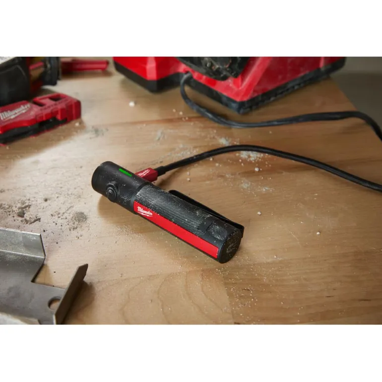 IP67-suojattu lamppu kestää upottamisen jopa 2 metrin syvyiseen veteen ja suojaa valaisinta pölyltä. Vilkkuva valo ilmaisee akun alhaisen tilan. Sisäänrakennettu MILWAUKEE® RECHARGEABLE™-akku on kätevästi ladattavissa micro-USB-kaapelilla USB-virtalähteestä tai pistorasiasta (seinäpistoketta ei toimiteta valaisimen mukana). Punottu micro-USB-kaapeli metallipäillä kestää vaativia työmaaolosuhteita.