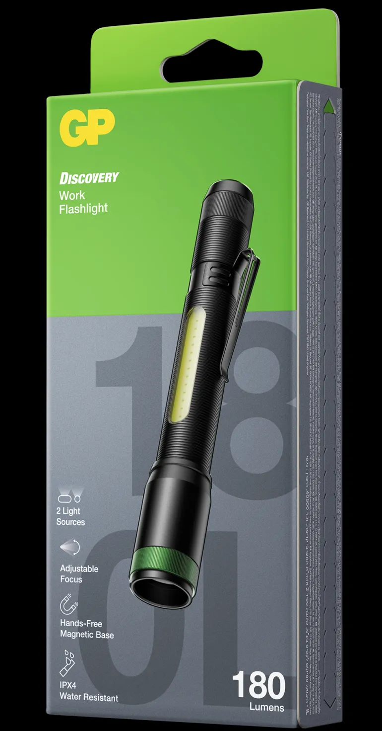 GP Discoveryn valikoimasta löydät kestäviä valaisimia varustettuna viimeisimmällä valoteknologialla, jonka ansiosta niiden virrankulutus on vähäinen, mutta samalla valovoima on korkea. Kaikissa GP Discovery valaisimissa on anodisoitu alumiinikotelo, mikä tekee niistä todella lujia ja kestäviä. Lisäksi ne istuvat käteen miellyttävästi karhennetun pintansa ansiosta, mikä myös helpottaa fokusointitoiminnon käyttöä. Discovery-taskulamppu on optimoitu toimimaan ladattavien GP ReCyko paristojen kanssa.