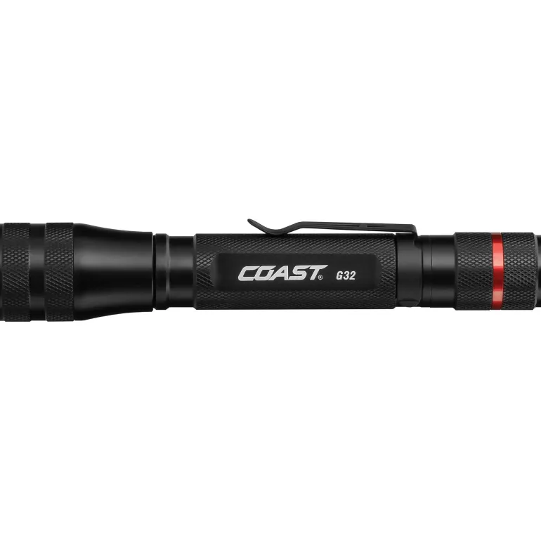 Coast G32 on taskulamppu, joka toimitetaan läpipainopakkauksessa. Lamppu tarjoaa vaikuttavan valon 355 lumenin ja 132 metrin kantaman ansiosta. Pure Beam Focusing Optic-järjestelmä tarjoaa erinomaisen säteilyvoimakkuuden ja Twist to Focus-järjestelmällä valo asettuu tarkennetusta valopylväästä (Spot) laajaan valopylvääseen (Flood) estämään tummat ympyrät, jotka ovat muuten tyypillisiä taskulampuille. G32 on iskunkestävä ja siinä on alumiininen kotelo kevyestä materiaalista, joka tekee taskulampusta tuulen- ja vedenpitävän. Lampun kestää pudottaa jopa metrin korkeudesta. Taskulampulla on Coastin elinikäinen takuu, ja se on testattu ja mukautettu ANSI/FL1-standardin mukaisesti.