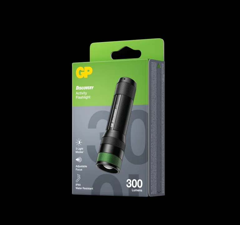 GP Discoveryn valikoimasta löydät kestäviä valaisimia varustettuna viimeisimmällä valoteknologialla, jonka ansiosta niiden virrankulutus on vähäinen, mutta samalla valovoima on korkea. Kaikissa GP Discovery valaisimissa on anodisoitu alumiinikotelo, mikä tekee niistä todella lujia ja kestäviä. Lisäksi ne istuvat käteen miellyttävästi karhennetun pintansa ansiosta, mikä myös helpottaa fokusointitoiminnon käyttöä. Discovery-taskulamppu on optimoitu toimimaan ladattavien GP ReCyko paristojen kanssa.