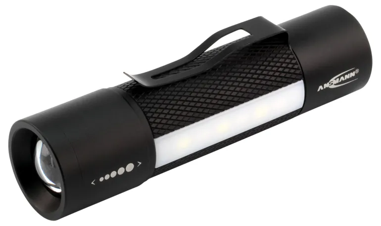 Ammattimainen alumiinikynä erittäin tehokkaalla heijastinjärjestelmällä. Sisältää 3 × ANSMANN AAA-alkaliparistoa. Irrotettava vyökiinnike ja magneetti.