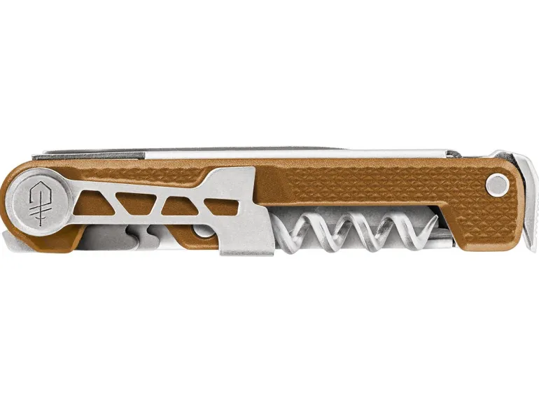 Yleistaskuveitsi erilaisiin käyttötarkoituksiin, yhtä toimiva kotona kuin telttaretkellä. 8 toimintoa, muun muassa korkkiruuvi vipuvarrella ja kalvoleikkurilla, vasara, sorkkarauta/pullonavaaja ja säilykepurkin-/paketinavaaja. Täydellinen työkalu kaikkiin tilanteisiin. Lujatekoinen rakenne ja pitkä terä (terän pituus: 6,3 cm), kestävä kahva anodisoitua alumiinia, muotoiltu pinta takaa varman otteen. Voidaan säilyttää taskussa käytännöllisen muodon ansiosta, lujatekoinen työkalu ruostumatonta terästä, yhden käden avaus, runkolukko.