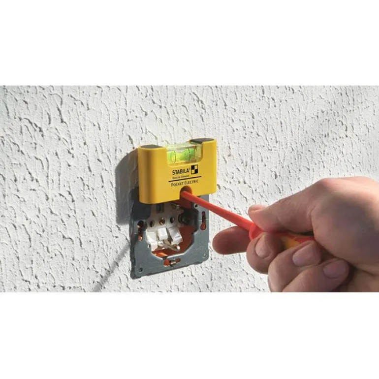 Stable Pocket Electric on erittäin ketterä minivesivaaka, joka on suunniteltu erityisesti sähköasentajille. Suunniteltu nopeaan vaaitukseen kytkimiä ja pistorasioita asennettaessa. Mukana on vahva magneetti esineisiin kiinnittymiseen, mikä helpottaa työtä.