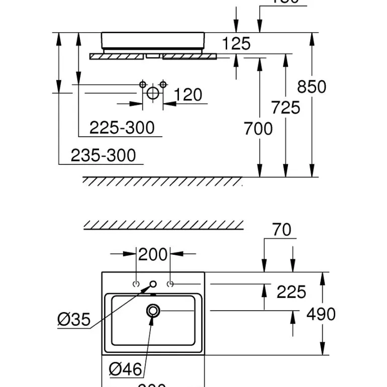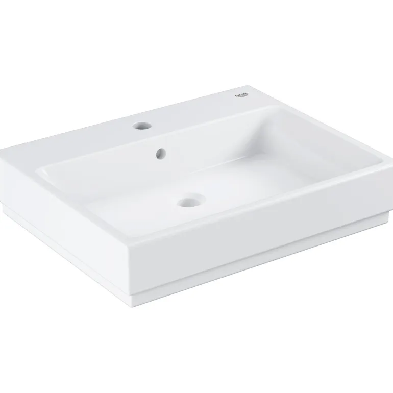 GROHE Cube Ceramic on 600 x 490 mm:n tasoallas ylivuotoaukolla. Pesuallas on valmistettu hienosta tulenkestävästä savesta, ja siinä on antibakteerinen PureGuard-pinnoite ja antibakteerinen lasitus.