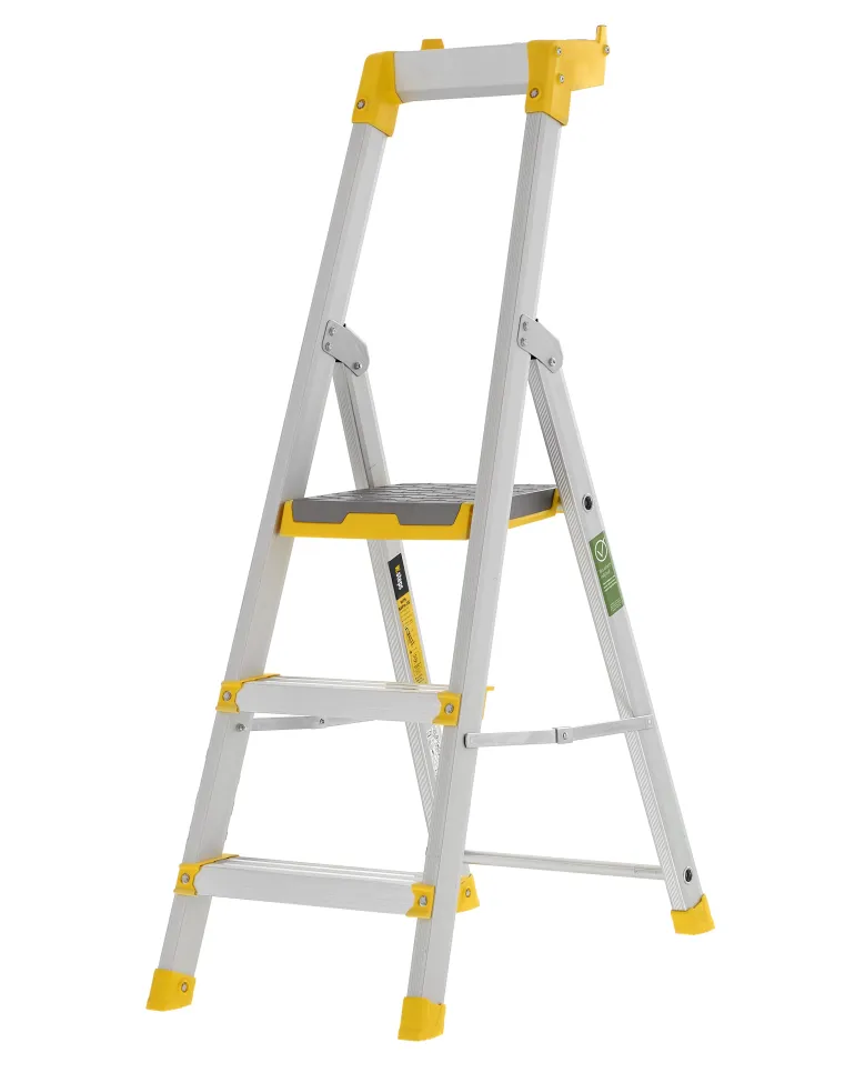 Tukevat tasotikkaat anodisoiduilla ja tummumattomilla sivutuilla. Hiljainen metallinen työtaso, jossa on kaksisuuntainen liukuestepinta. Ergonomiset askelmien etuosat, joita vasten voi nojata. 3-, 4- ja 5-askelmaisilla malleilla on Hyvä työympäristö -säädöksen mukainen hyväksyntä.