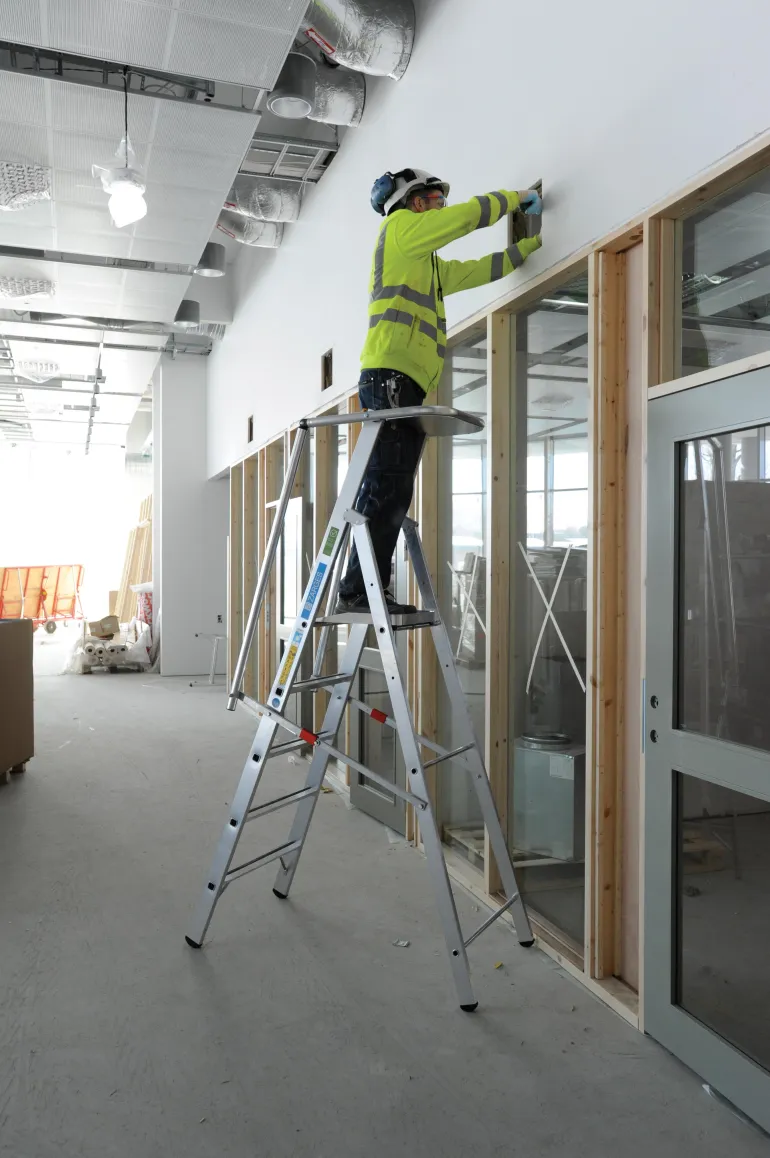 Erittäin kevyet tasotikkaat: Kevyt ja käytännöllinen kokoontaitettavien kaiteiden ansiosta. Suuri työtaso (400 x 400 mm) takaa hyvän käyttömukavuuden. Työturvallisuutta parantava kaide kolmella puolella.