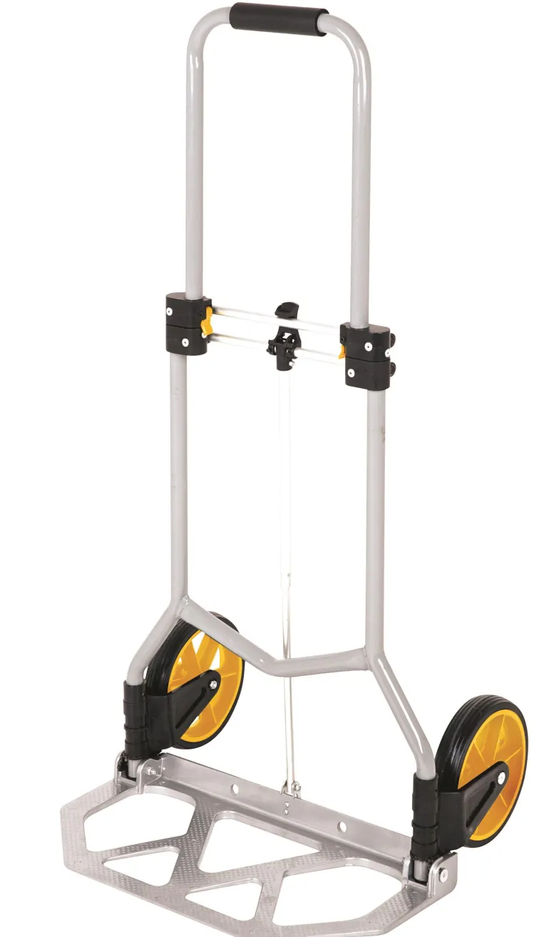 Taittuvat alumiinikärryt, muovipyörät.