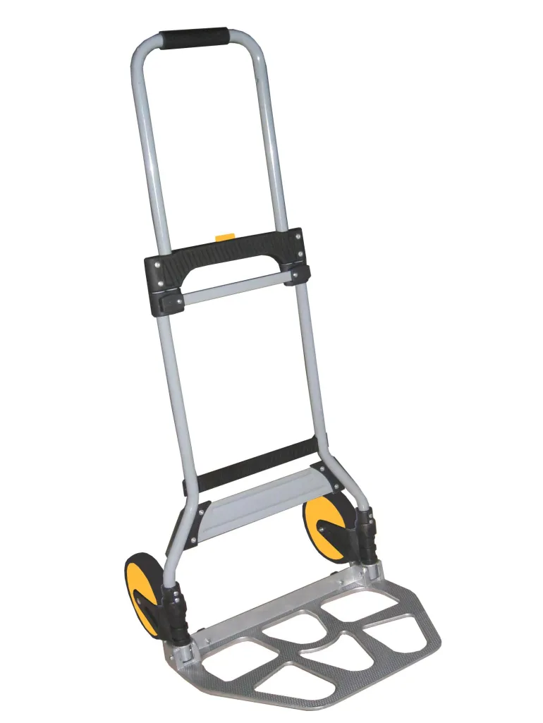 Taittuvat alumiinikärryt, muovipyörät.