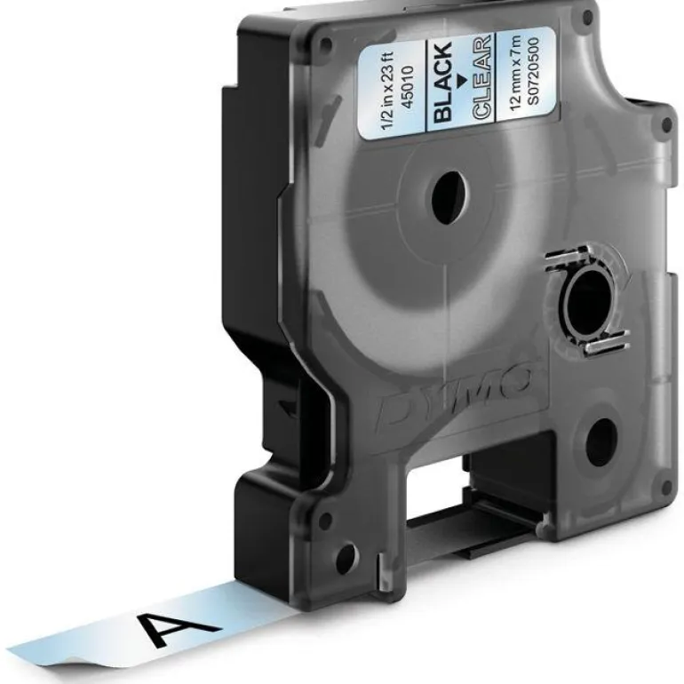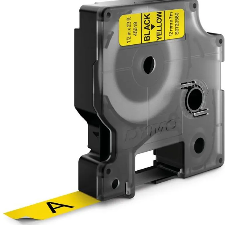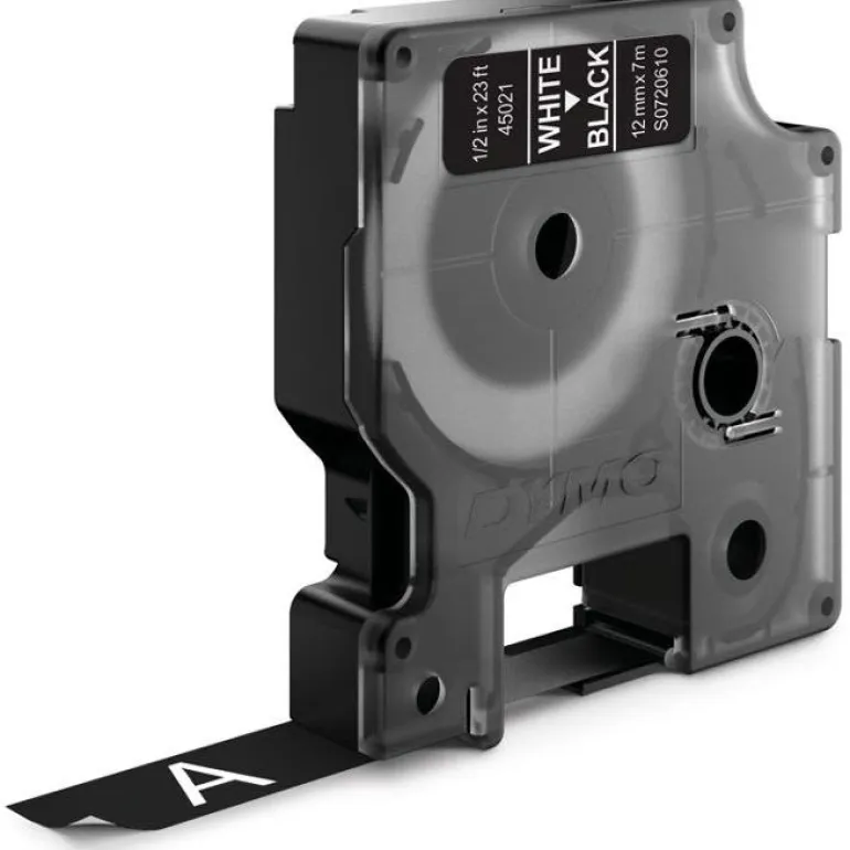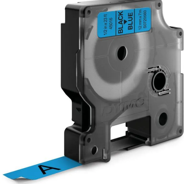 D1-merkkausteippi, 12 mm x 7 m. Sopii DYMO LabelManager -tarratulostimiin, leveys 12 mm.