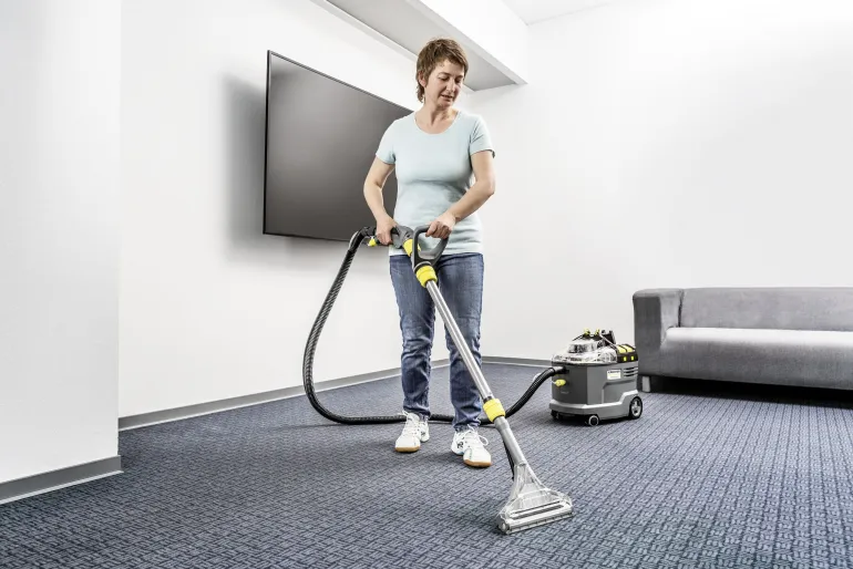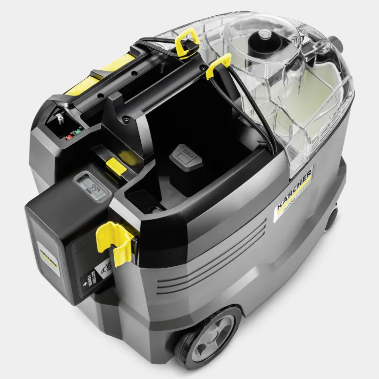 Toimii myös märkäkuivaimurina: pesuaine suihkutetaan paineen avulla tekstiilikuitujen sisään ja tehokas imutoiminto poistaa pesuveden ja irronneen lian. Tehokkaan imutoiminnon ansiosta pestävät pinnat kuivuvat nopeasti käyttövalmiiksi.