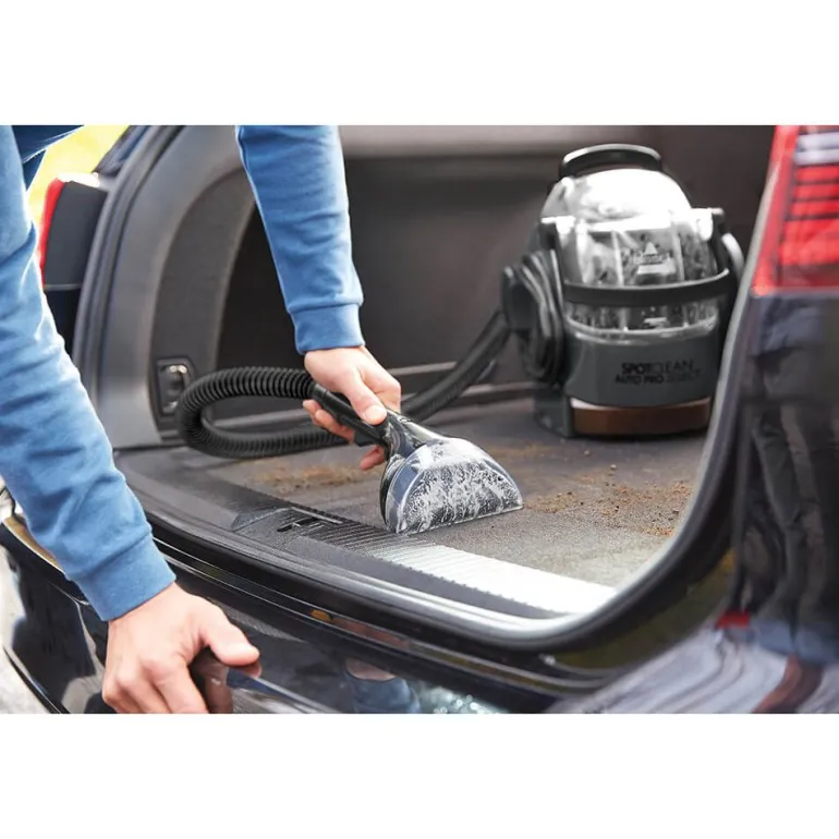 Kannettava SpotClean Auto Pro Select matto- ja tekstiilipesuri 750 W, joka poistaa tahrat helposti ja nopeasti. Liukuvalla XL-rakosuulakkeella pääset käsiksi ahtaisiinkin paikkoihin, kuten auton sisätilojen pinnat perusteellista puhdistusta varten.